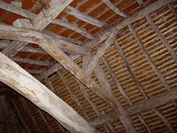 First mistake. This woodwork is 150 year old oak and if its not rotten now, it's going to be like iron. As you can see, it's not in that bad condition. Also the roof is not leaking, so I'm afraid, he is out of the picture.